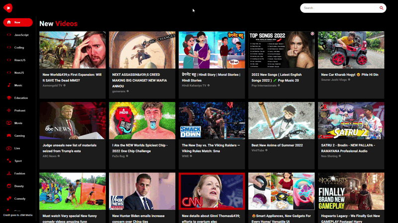 The YouTube clone offers users a different user interface with search functionality, category selections, and many other features, and it's fully responsive to any device..